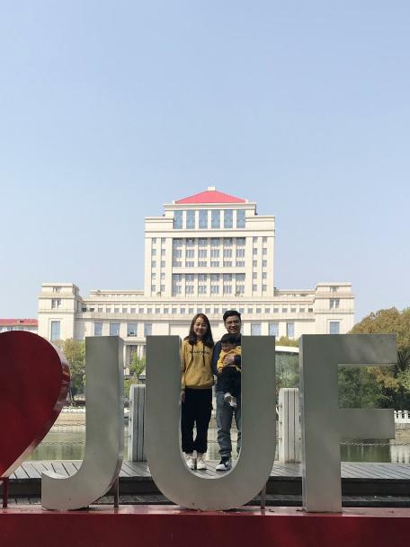 2015年,我们毕业了。从南区广场到沁园,从蛟湖到北区足球场,江财每个有纪念意义的地方都留下了我们的记忆。2017年,我们领证了。婚纱照外景地首选就是江财。当我俩身着白色西服及婚纱来到江财大门前时,看到学弟学妹们青春的活力,仿佛又回到了我们初入江财的那一瞬间。2020年,我们的宝贝出生了。在她还不会说话的时候,我们带着她来到我们爱情萌芽的地方,边跟她讲着我们的爱情故事,边回忆着属于我们的甜蜜时刻。江财不仅是我们的母校,更是我们爱情的见证者,一切都刚刚好!