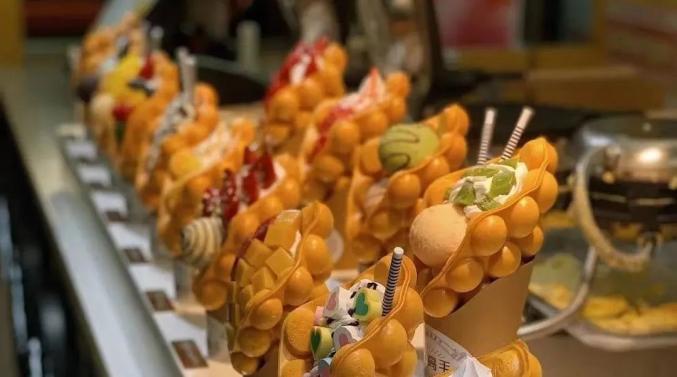 一份好吃的鸡蛋仔,从它的蛋仔糊开始,就要做到浓稠、没有结块、气泡少,蛋仔全部现点现做,刚出锅的蛋仔色泽光亮诱人,粒粒饱满,外表金黄,像一个个闪闪发光的电灯泡,再用风扇一吹,浓厚的香味扑鼻而来,外酥里嫩,深得人心,再配上奶香奶香的冰淇凌,别提多好吃!街头酒咖