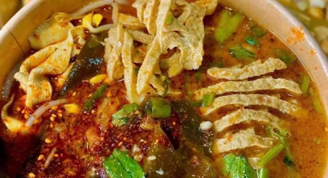 滚烫的汤水咕噜咕噜冒着热气;一串串小吃在里面煮着,香气四溢,飘香十里。鸡汁豆腐