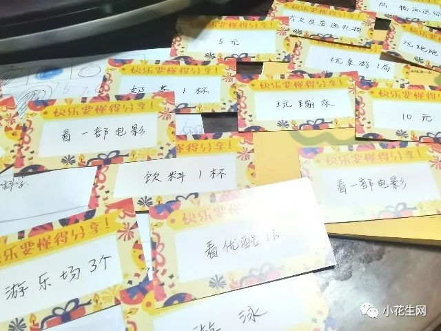 这些是奖励卡,如:看一部电影、玩蹦床、奶茶1杯...