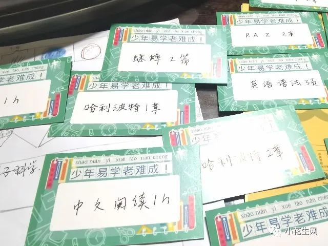 这些是任务卡和学习卡,如:哈利波特1章、英语语法3项、中文阅读1h...