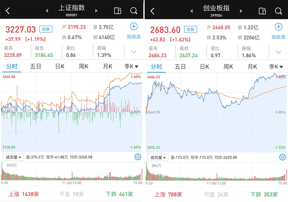 A股市场放量收涨:午后券商股发力,三大指数均涨逾1%