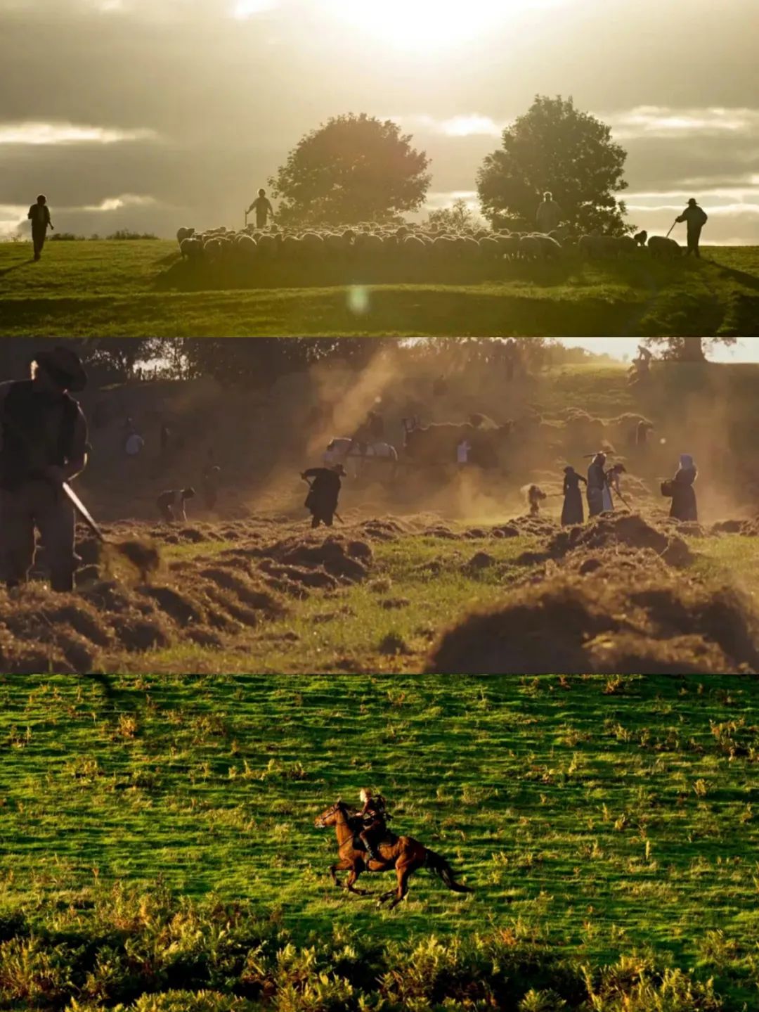 电影里的风光也很出众:大片的农场、金色的麦田、陡峭的山壁,复古的英伦田园风光,如诗如画,谁能拒绝这场视觉盛宴呢?