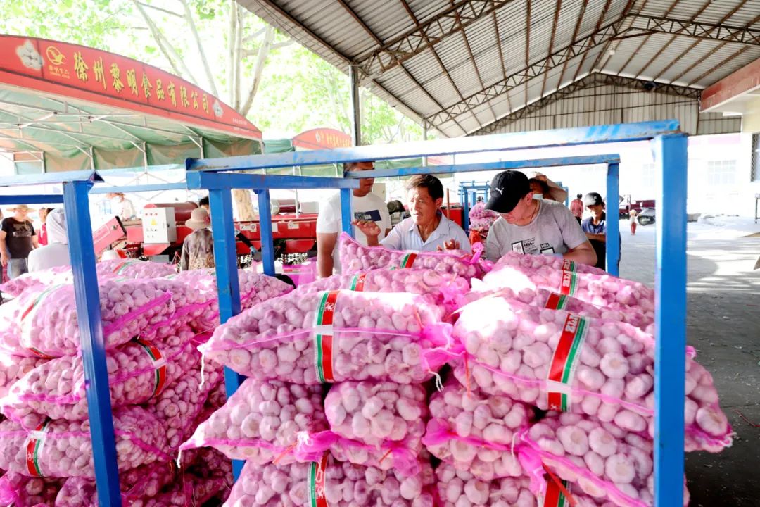 邳州大蒜目前拥有种植面积60万亩以上,年产优质大蒜60万吨,是全国最大的优质大蒜生产基地。逐步形成了集种植、深加工、贸易、研发、信息中介、市场服务等为一体的产业链条,成为国内重要的大蒜集散交易中心、价格形成中心和信息发布中心。每年6月份大蒜收获后,大蒜出口商、深加工企业都需要把新鲜的大蒜放进冷库保存,宿羊山镇、碾庄镇、赵墩镇等大蒜主产区就建立了一大批冷库,可以把大蒜保存到第二年春季。