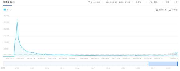 图2(百度指数中“打工人”词条搜索指数变化趋势图)