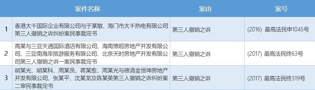 三、检索结果:检索关键词“无独立请求权第三人、第三人撤销之诉”,经筛选与本案类似度高的案件共3件