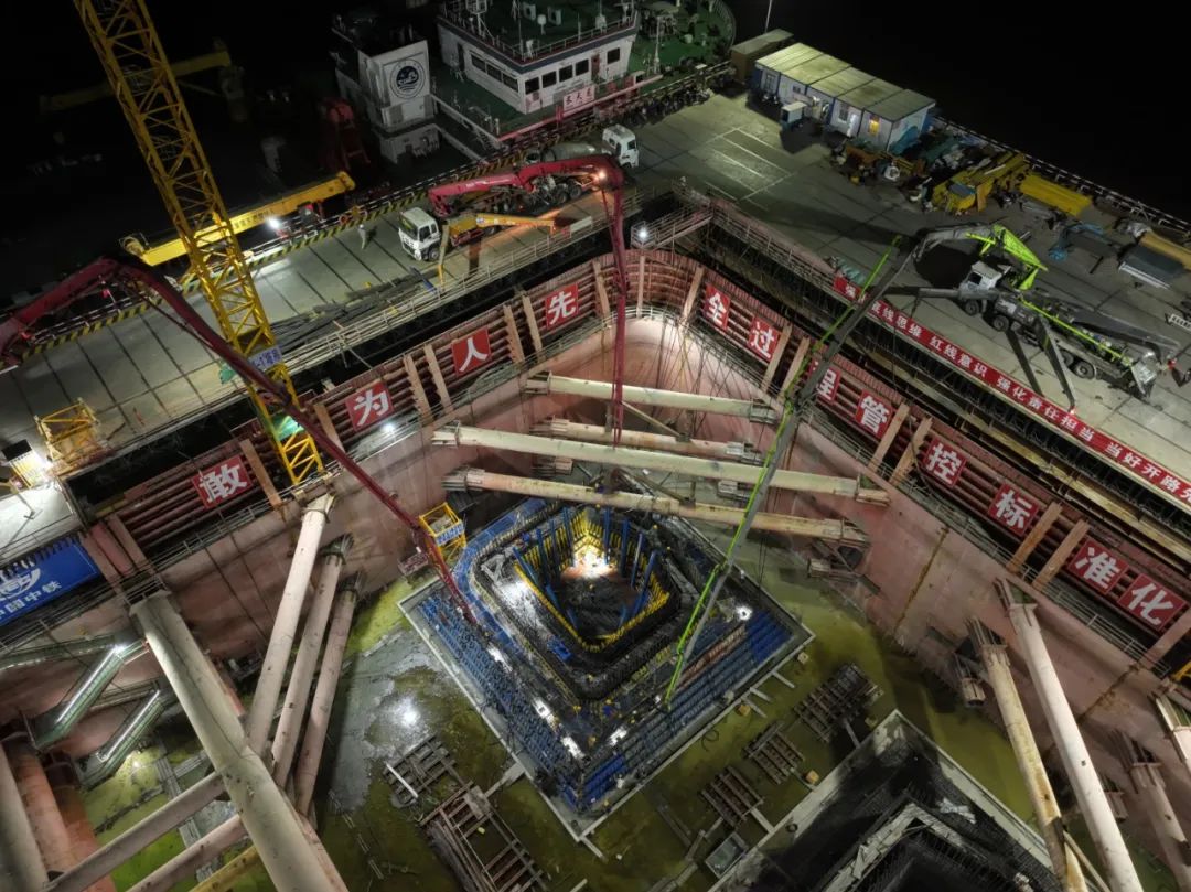 8月5日晚,世界最大跨度的三塔公铁两用斜拉桥——巢马城际铁路马鞍山长江公铁大桥中塔4号墩塔座及第一节塔柱开始浇筑混凝土,标志着巢马城际铁路全线控制性工程——马鞍山长江公铁大桥全面进入塔柱施工阶段。