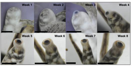 图源:clamsplaning此外,海螺的眼睛还有一个你想不到的特异功能,它会再生。2018年,有科学家对海螺做了一个实验,把它的两只眼睛切掉了,但过了8周之后,它就长了一对新眼在眼柄上。