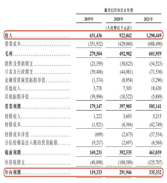 2019年至2021年,乐华娱乐集团的收入分别为6.31亿元、9.22亿元和12.9亿元;年内利润分别为1.19亿元、2.92亿元和3.35亿元。