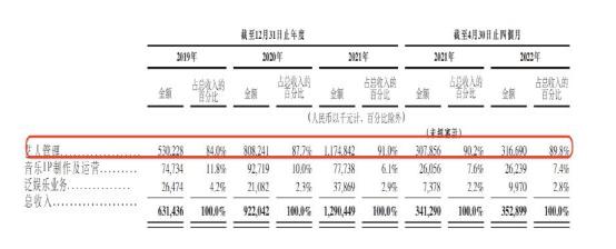 值得注意的是,目前的营收中,艺人管理业务的收入,占据乐华娱乐总收入的近九成。