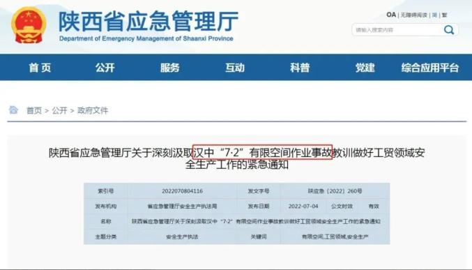 6月23日,济南市莱芜区山东省万兴食品有限公司污水处理站发生一起中毒事故,造成2人死亡。经初步了解,事故企业未制定有限空间作业操作规程,未履行有限空间作业审批制度,此次有限空间作业未履行“先通风、再检测、后进入”基本要求,发生事故的污水操作工在无三脚架、安全绳、空气呼吸器等安全保护措施情况下进入有限空间实施作业,另外一名事故人员在无安全保护措施情况下盲目进入施救。广东省