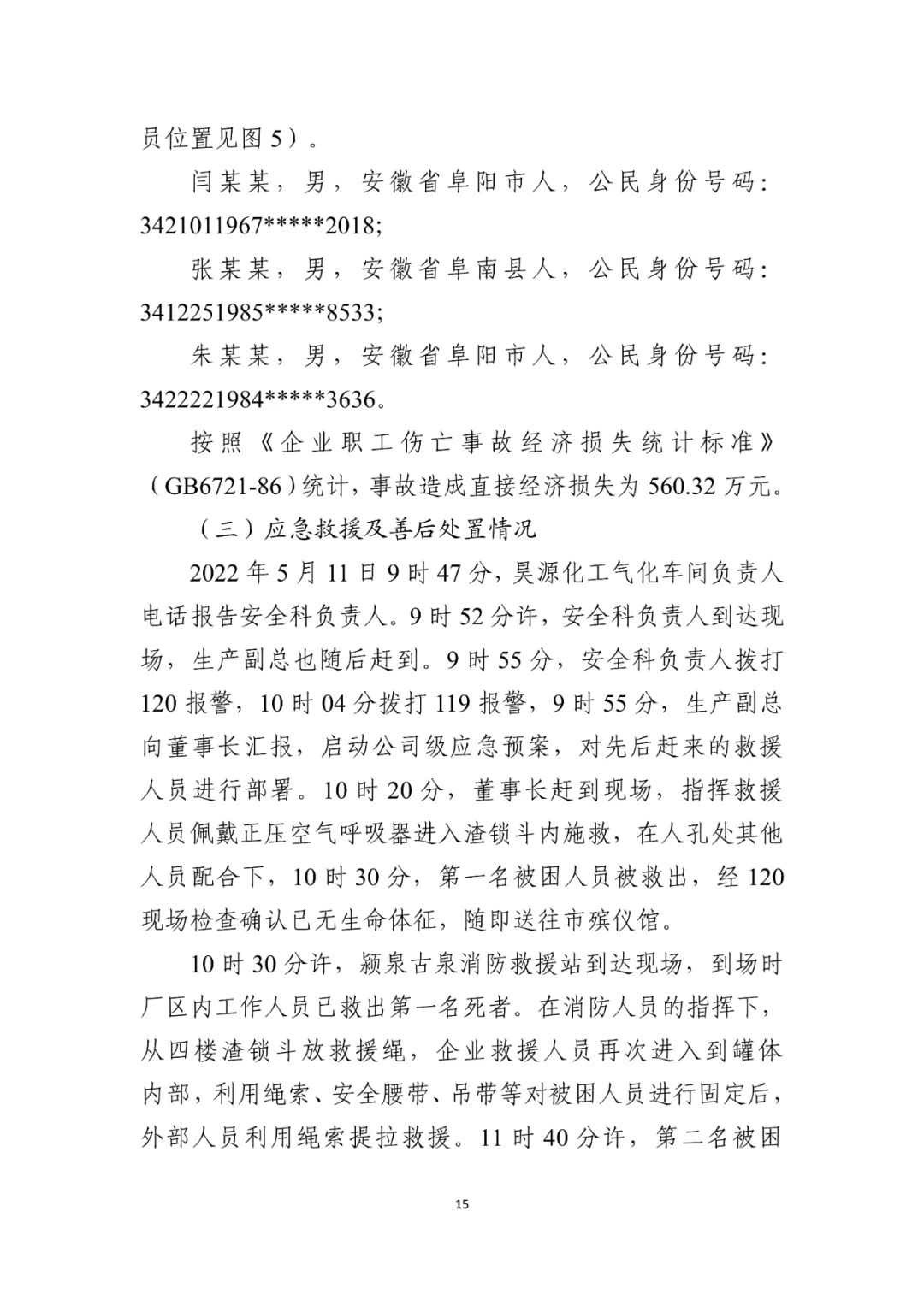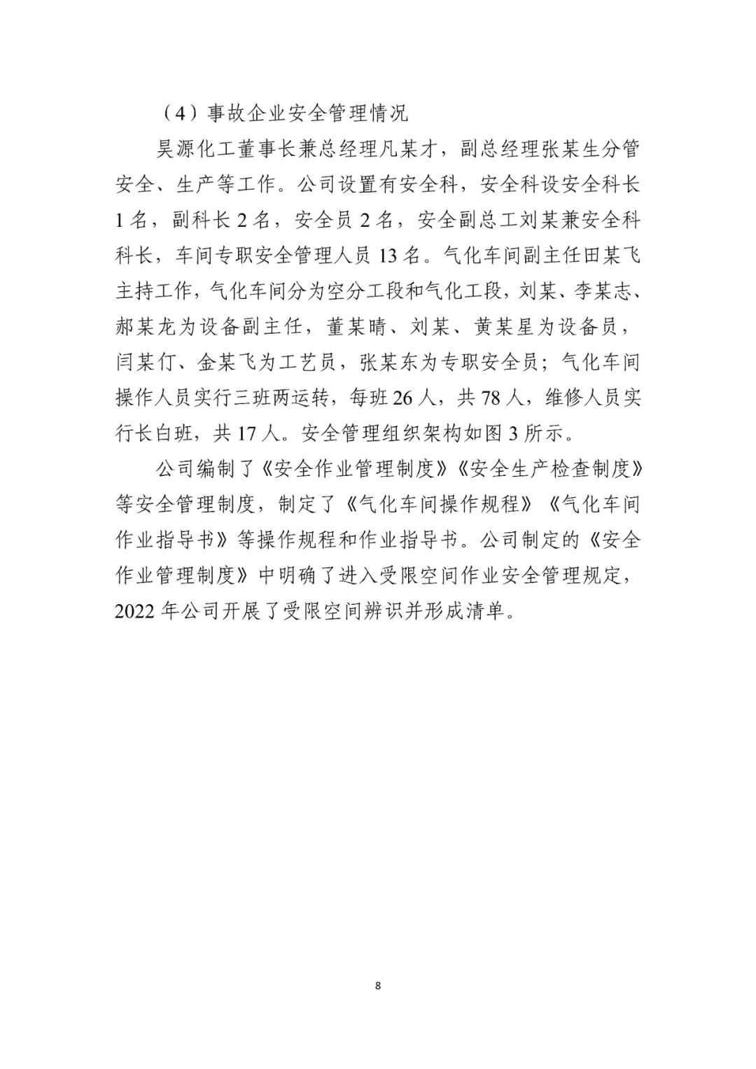 事故调查报告显示,5月9日,安徽昊源化工集团有限公司气化车间开展2#气化炉系统检修。在基本执行有限空间作业程序的情况下,检修过程中发生二氧化碳窒息死亡事故,造成包括专职安全员张某东,综合办主任朱某朋在内的3人死亡。