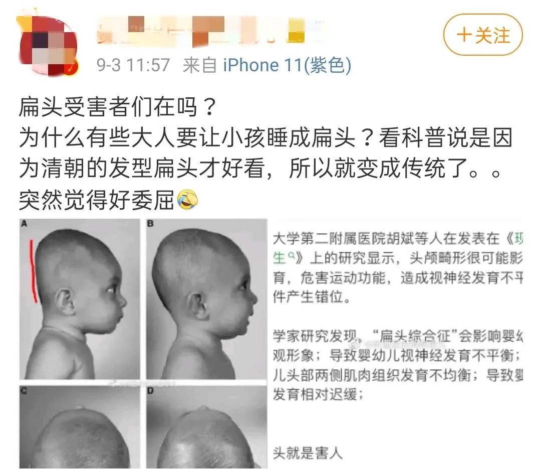 不难看出,老一辈的人对“扁头”真的是情有独钟,总会想方设法将孩子睡成“扁头”。