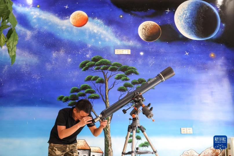 7月20日,参观者在天文小镇上的“天文体验馆”内参观 图/新华社 欧东衢 摄2016年,刘成亮从前进村搬迁到克度镇航龙村,并将安置房用于经营民宿。目前,他所经营的民宿有10余个房间,在每年的旅游旺季,入住率能达到百分之八十以上,一年有十几万元的收入,生活与之前相比得到很大改善。