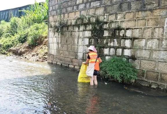 吴景翠正在打捞河道垃圾改善人居环境,扮靓村庄颜值,群众的支持是美丽乡村建设最大的“底气”。“大家都自发参加志愿服务,积极配合这项工作。村子干净整洁了,我们的生活也就更舒心了。”鼠场村村民吴景翠是志愿服务队伍中一员,她穿着水鞋正在打捞河道中的秸秆、矿泉水瓶、杂草、枯木烂枝等漂浮物。