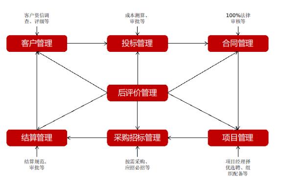 综上,通过业务管控体系设计与实施,航天建设进一步建立健全工程项目标准化管理模式,形成标准性一致性强的刚性管控方式,通过搭建业务管控架构,明确生产建设各环节管控要点,实现全产业链环环相扣、紧密相关,各环节流程化、制度化、责任化的闭环管理模式,全面提升工程建设项目高标准、高质量、高效率的管理能力,有效降低项目管理风险、法律诉讼风险、重大经营决策风险,形成具有航天特色的业务管控规范化引领的标杆。后续,航天建设将进一步加强业务管控体系的研究与优化,结合国家、地方、行业最新政策以及集团公司、企业发展战略保持更新,确保业务管控体系与时俱进、适应发展。