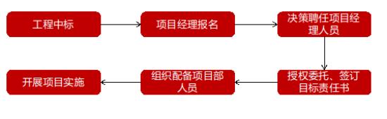 图5项目经理选聘完成后由企业法定代表人签发书面授权委托书并签订项目管理目标责任书,根据项目合同和企业管理规定,明确项目管理目标、利润目标、授权管理范围、职责及权限。通过授权委托书和项目管理责任书两相结合,既给予项目经理一定管理权限又对其权力限制,充分调动项目经理工作积极性,确保项目有序开展。同时,设置基于标准化业务流程链条组织机构并匹配具备执业上岗资格的人员,明确各岗位在管理体系中的角色定位,形成跨部门、跨岗位的监督约束机制,保障信息公开、资源共享,让职权在阳光下运行。
