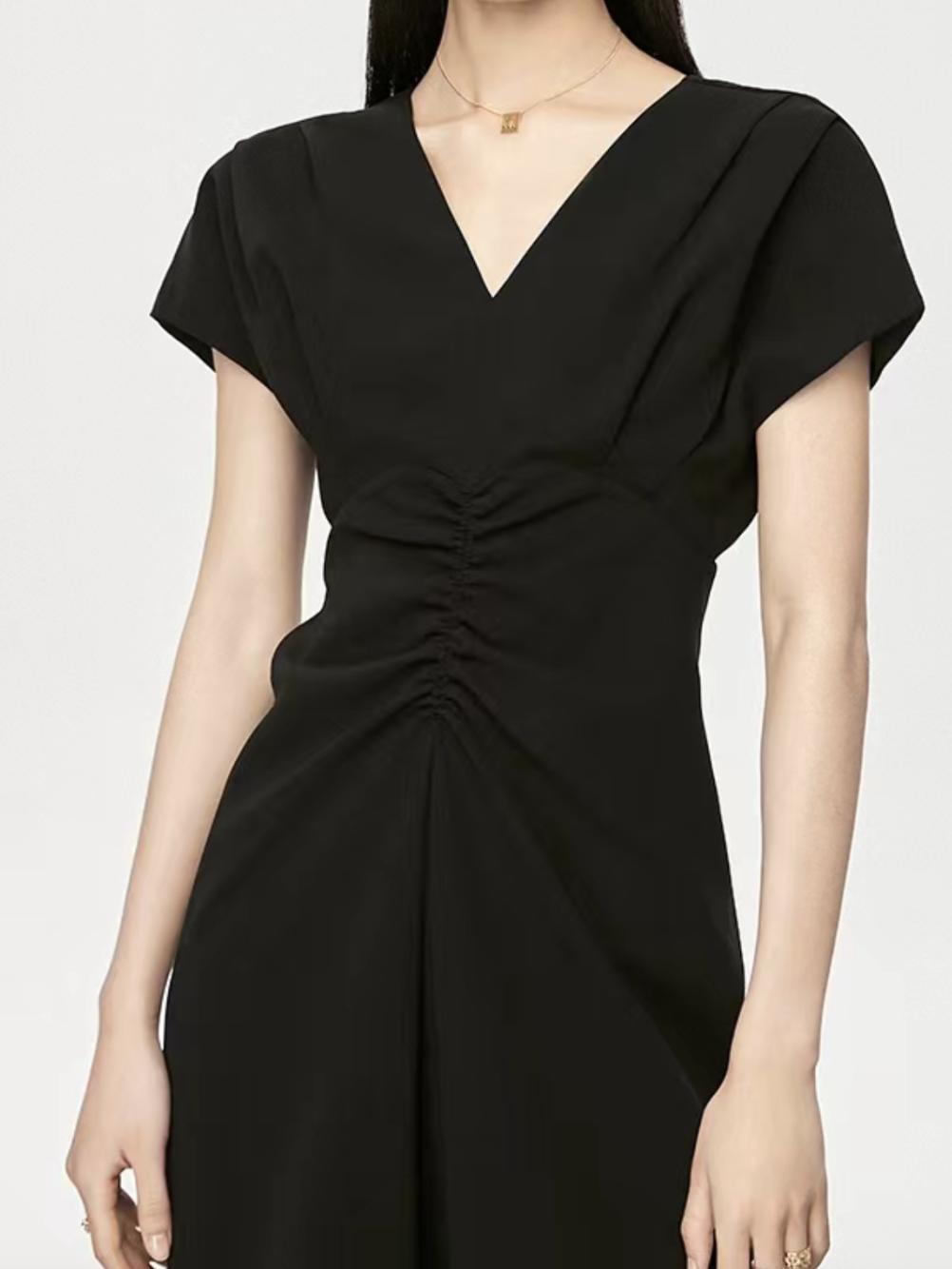 典型的H型身材,穿中长款X裙会更显端庄优雅,抽拉收腰凸显胸部曲线与腰线,松弛有度的设计就算胖一点也可大胆尝试~