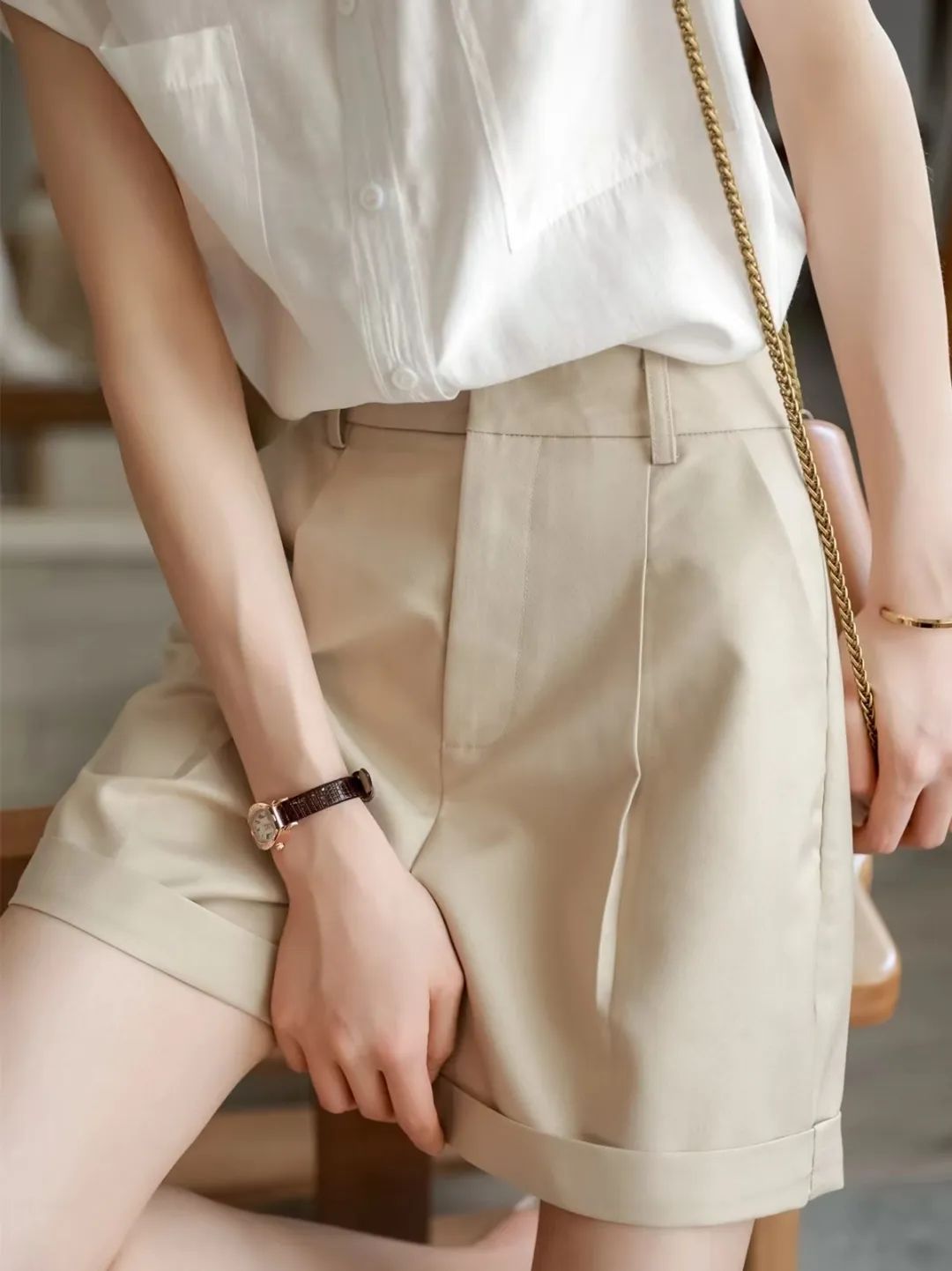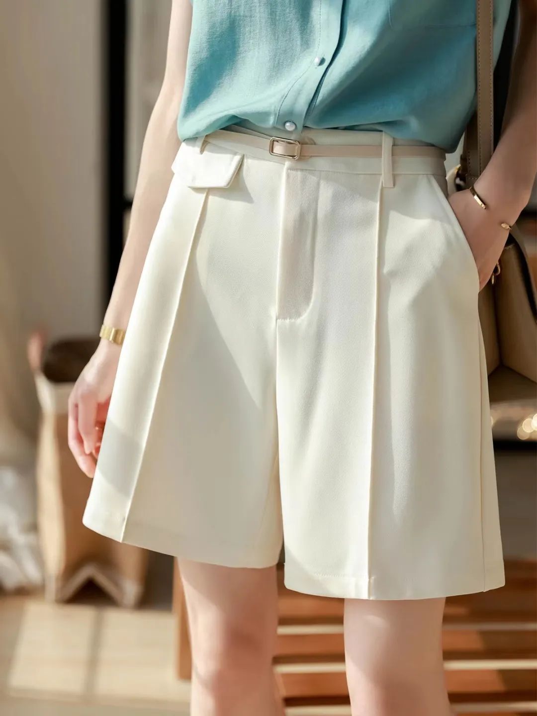 今年短裤的流行点莫过于五分裤了,A字阔腿裙摆随性自然,不仅收腰还能从视觉上显腿细,游走于休闲与知性之间,上班约会都很合适。