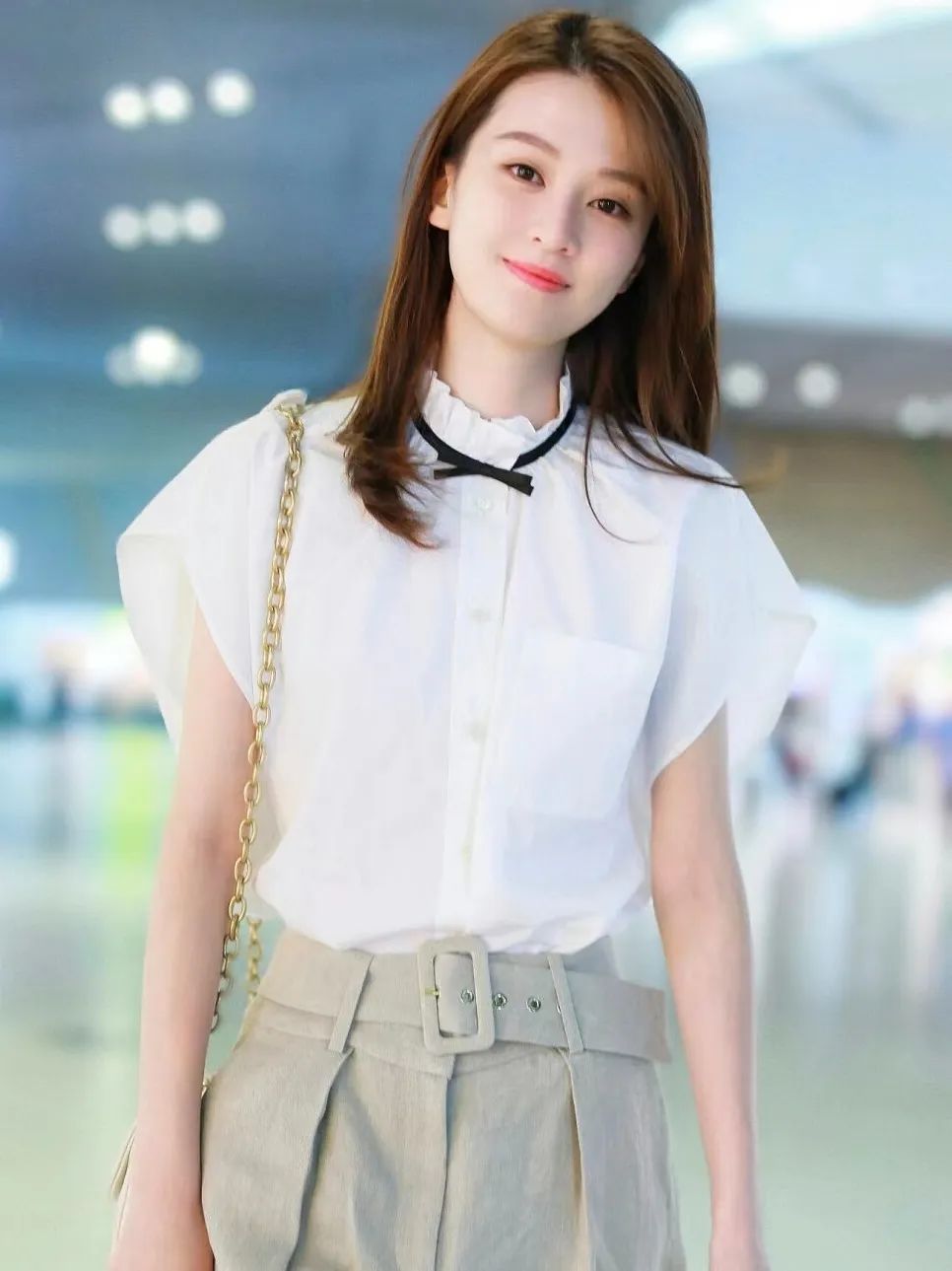 赵露思因为咱们目的是“突出腰线”,所以裤型的选择可以是阔腿裤、萝卜裤、喇叭裤。
