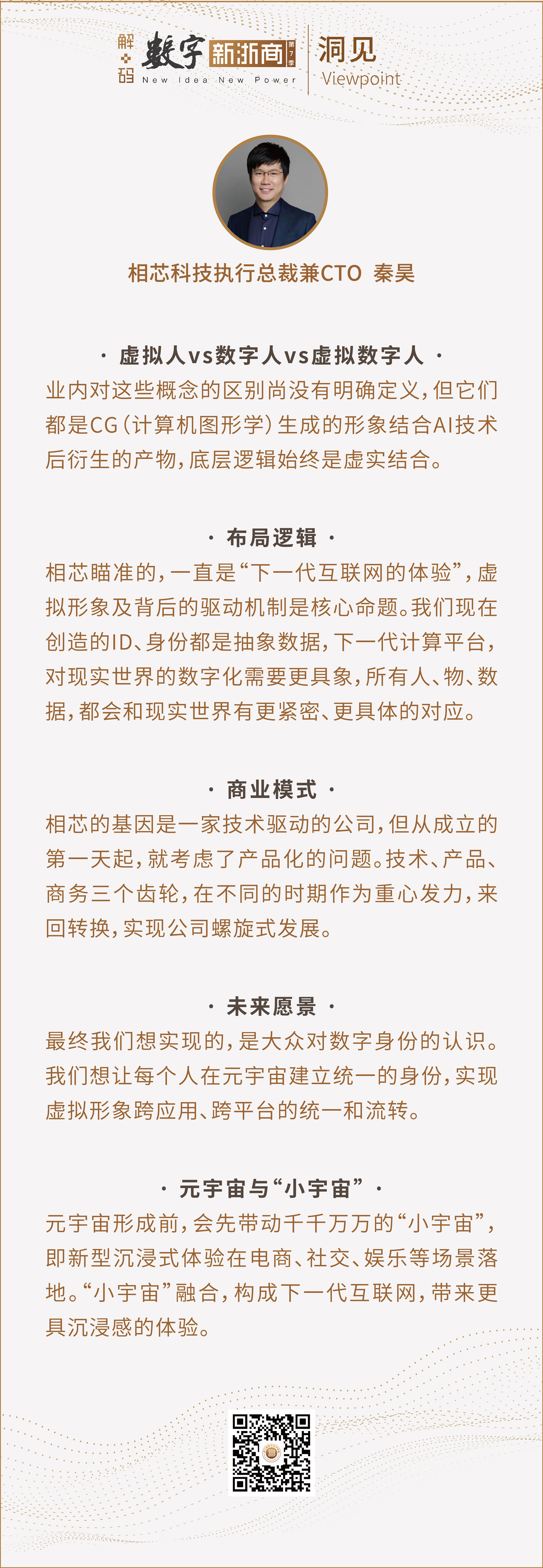 相芯的使命,就是为每个人在元宇宙建立统一的身份,实现虚拟形象跨应用、跨平台的统一和流转。——相芯科技 秦昊