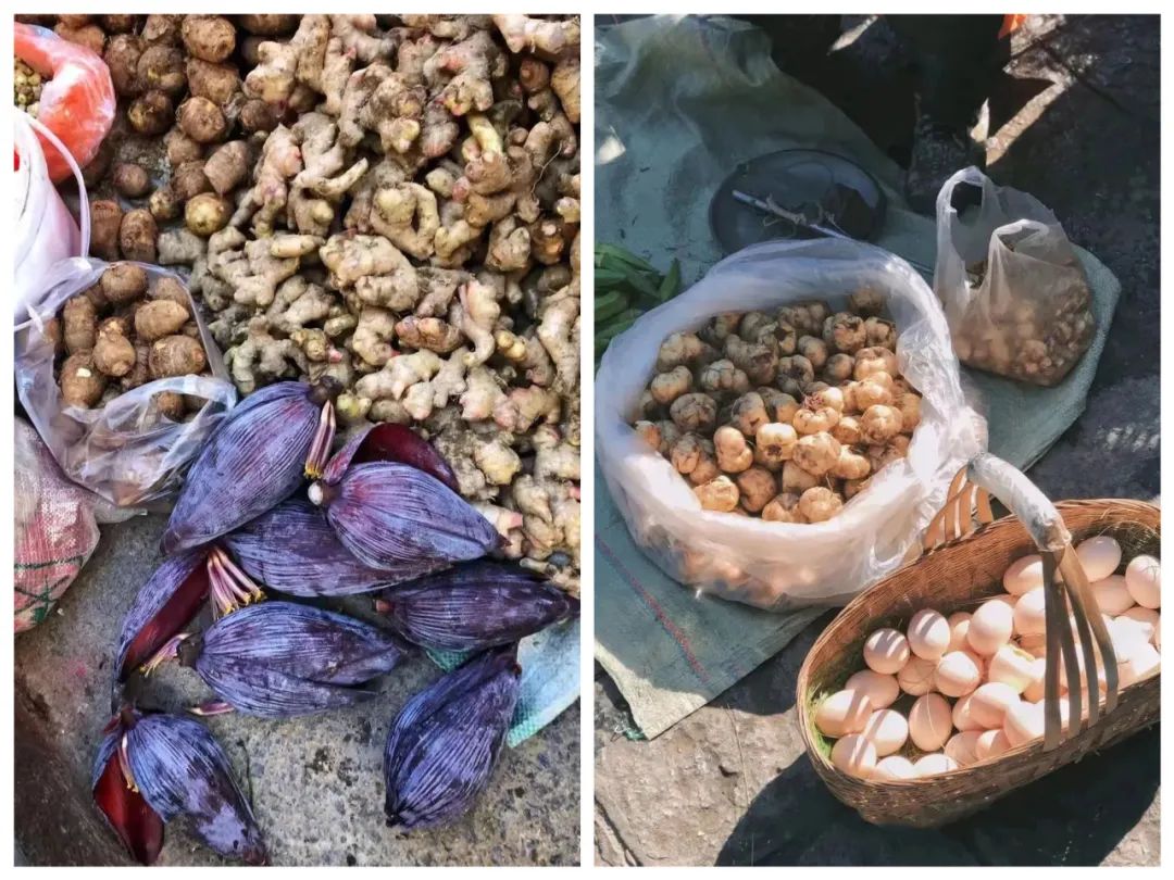 ▲大理菜市场里的鲜百合和紫色芭蕉花