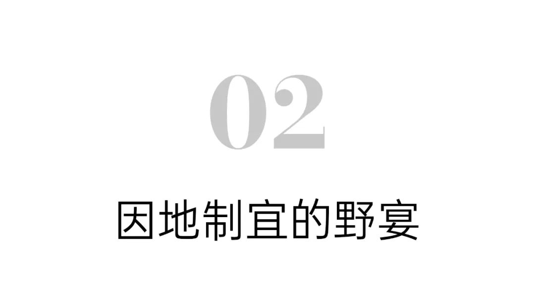 食物也是,每一场户外私宴,菜单都是不同的。食材需要因地制宜,还得遵循二十四节气,不时不食。最重要的是,坐在一个地方,我们需要弄明白的一点是为什么要吃这一道菜。如果在沙漠,我不可能做海鲜类的菜。