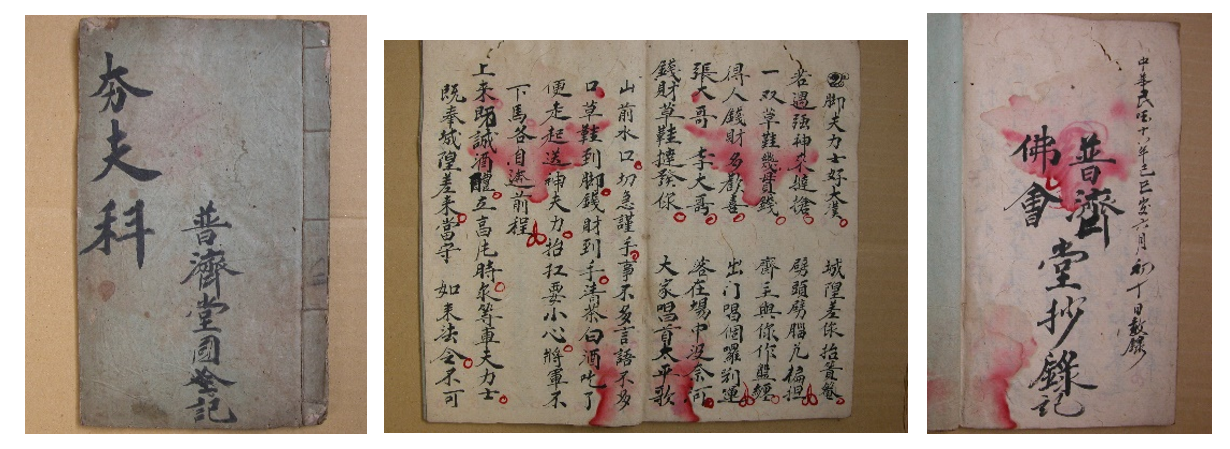 宋代就有所不同了,冥财需要生人想办法搬运:余干洪崖乡嵻㟍山民项明取妻胡氏,死后幽魂复来,与项共处,“继言:‘吾父室庐损敝,拟造新居,求钱助费。’亟焚纸镪数百束,又云:‘钱甚多,无人辇送。’乃唤画工作两力人,既成,嫌其矬弱,复易之。俄告去,曰欲偕二亲治屋。”阴间老丈人修房子,“赞助”都拉到了阳间,出了钱还要负责运送。画工画的力人就是专为负责辇送,按风俗把纸上画的力人烧掉就可以了,没想到力人画得矮小了,扛不动冥钱,又得重新返工绘制。如此周折,可见宋代人头脑中冥财搬运已经是一个需要对付的问题,这个趋势在宋以降的寿生科仪中发展出套专门安排、犒赏冥财搬运车夫力士的仪式,称为《祭享神吏夫丁集》《夯夫科》《佛门填还预修请车夫科范》等(图一)。这些仪式主要就是发牒文至城隍,请发阴中力士车夫搬运冥财,到斋坛聚齐点名,设宴犒赏,交付箱笼之时还要附带关凭路引,以备沿途通关所用,直至安稳运入冥中库司,经检视核对无误收入库中才算完毕。所谓“具筵设醴召神夫,清点无嫌姓字呼。满酌芳樽同畅饮,欣然运递入冥都”,概括了祭享神夫力士仪式的内容。