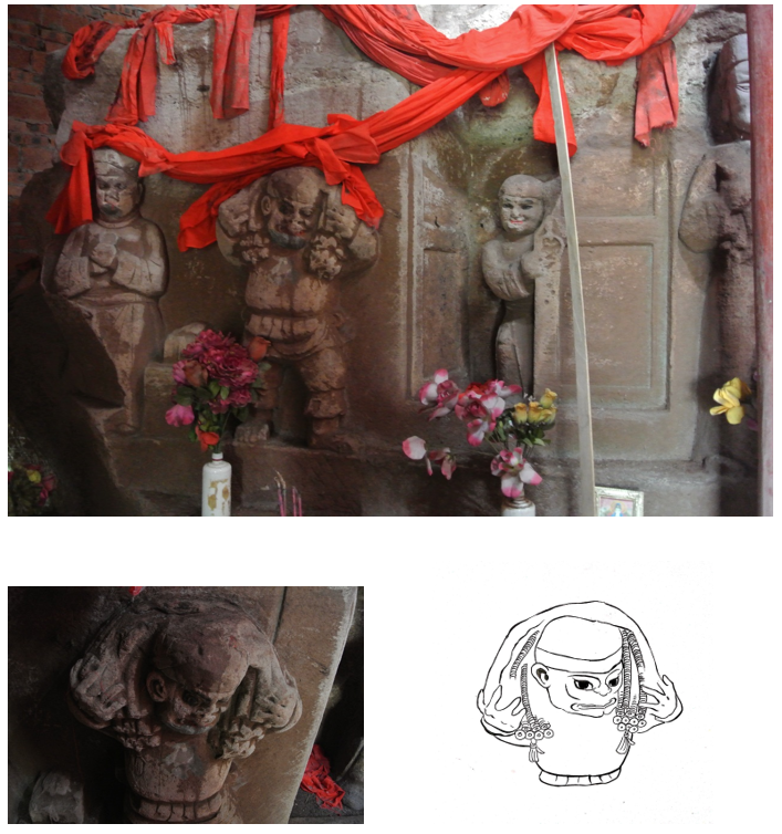 冥界车夫力士搬运的图像从宋代石刻中就可以看到,大足石篆山第11号长寿王龛就有生动的车夫力士形象(图三):一力伕肩扛十数贯铜钱费力前行,铜钱很沉重,力伕被压得呲牙裂嘴。这个图像里的力士就是冥间的阴差力伕,负责搬运等差事,称为水脚搬运使者,寿生仪式牒文里面会专门疏文请冥府发力伕搬运:“烦地府七金山发到水脚搬运使者共扛抬至地府某库某曹官案下交纳。若受生钱则书阴府寿生院某库交纳,以填完贷之名,所有实际扛逐一开具于后”,这些力伕称为水脚搬运使者,也叫车夫力士,他们搬运冥财至地府收纳,沿路还需要路引:“在冥关门上一应关津把隘去处毋得关当羁延及损坏、□印、磨、疏失等事。并仰遵依佛旨风火奉行须至引者,右引给付七金山搬运水脚力士,其几名沿途照验,准此。”打点车夫力士在寿生仪式中很重要,人们认为力伕尽力才能把冥财顺利搬运进入府库,所以要给专门关照力伕,给他们路费盘缠、路引:“车夫力士,且听吾言,篑箱要你搬运。与你纸钱,路费盘缠。给你路引,验看施行。交与库内,耐心守百年。”从上引《寄库阴阳册籍式》可以知道,这个搬运使者所驮的铜钱的计数单位是“扛”,图中搬运使者所驮就是“一扛”。