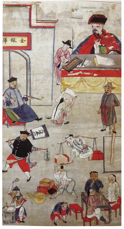 图四、清代寿生寄库水陆画车夫犒赏及搬运(胡彬彬等:《丹青教化:长江流域民俗文化与艺术遗存(水陆画)》,湖南大学出版社,2013年,第229页。)