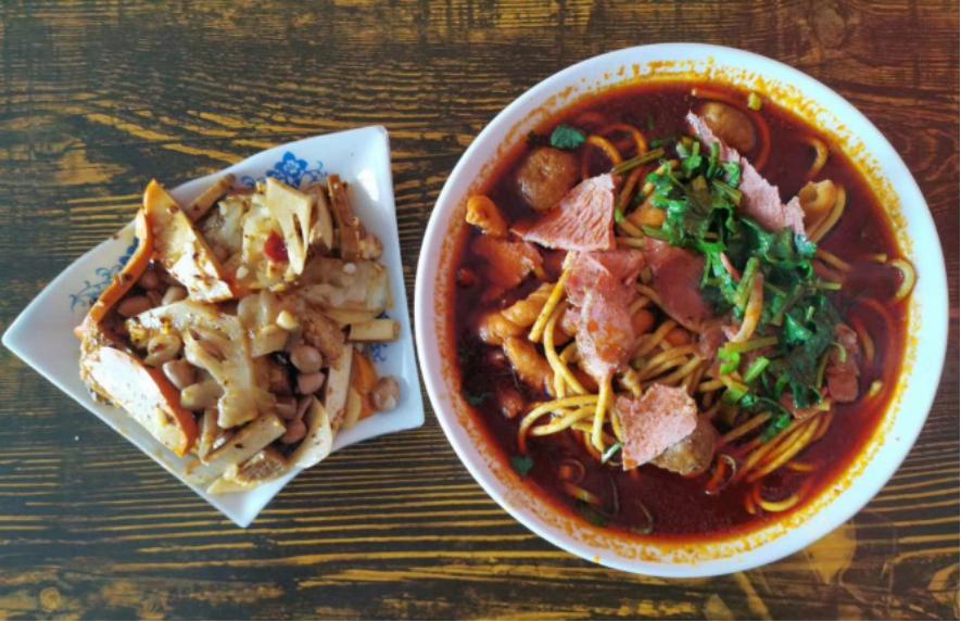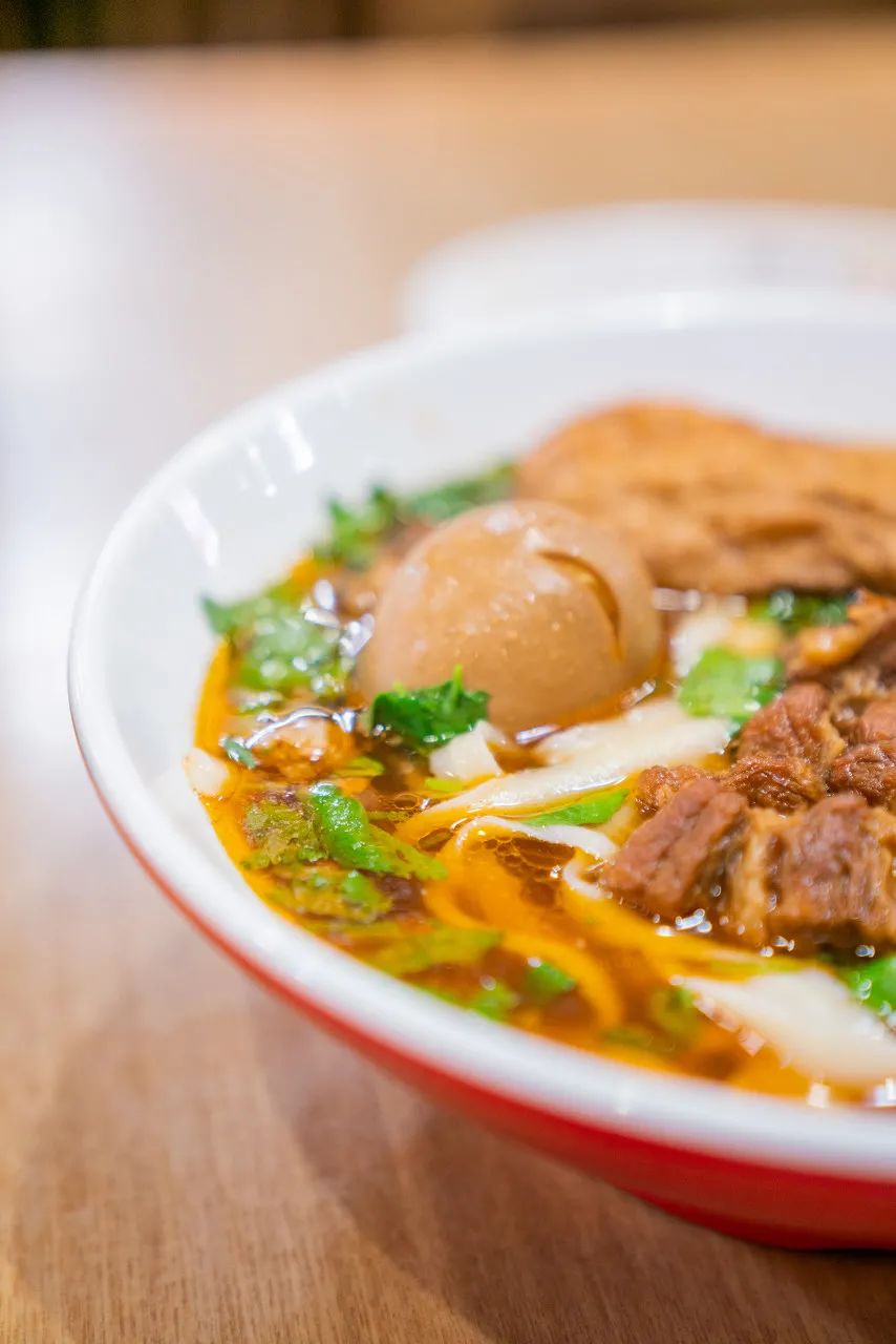 它配料简单,名字即所有,味道却十分特殊。从理论角度分析,秘诀应该是在汤。用牛骨熬煮,再加上草药和香料配成的秘方,熬出来的老汤风味独特,让牛肉+丸子+面的组合成了“想到就馋,吃了还想”的经典面食。