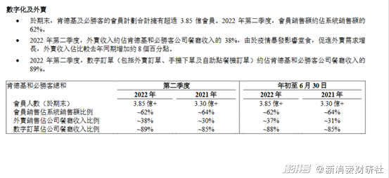 据百胜中国财报,2022年第二季度,外卖收入约占肯德基和必胜客公司餐厅收入的38%,由于疫情暴发影响堂食,促进外卖需求增长,外卖收入占比较去年同期增加约8个百分点。同期,数字订单(包括外卖订单、手机下单及自助点餐机订单)约占肯德基和必胜客公司餐厅收入的89%。