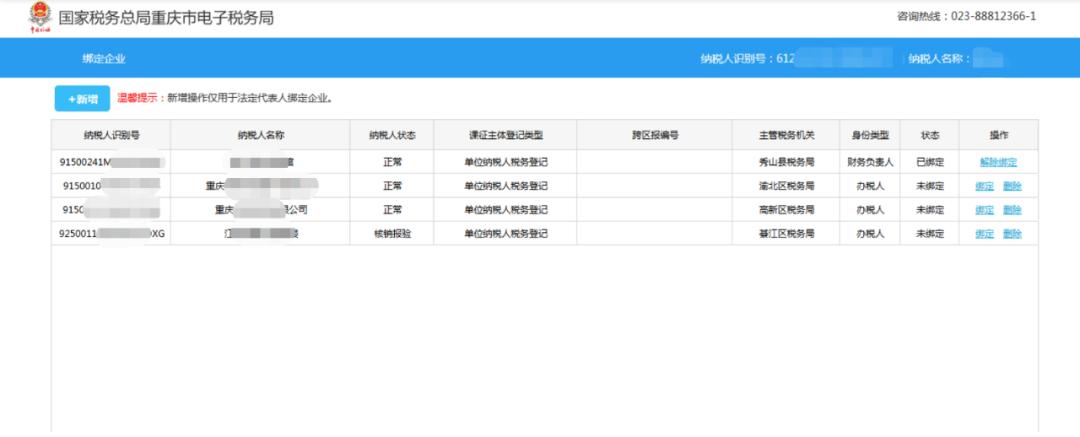 第三步财务人员/办税人员登录自己的自然人电子税务局在“企业用户授权-企业绑定”里点击绑定。