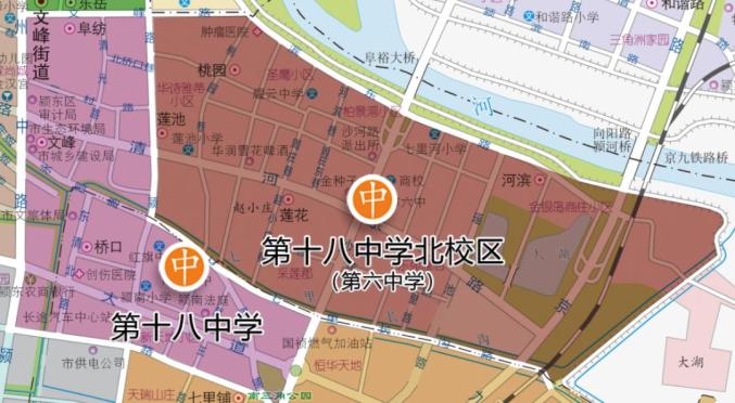 3.阜阳市第十八中学:东至沙河路接七里长沟向北接颍上北路,南至颍南路,西至颍州中路,北至文峰路。(校本部学区、北校区学区见下图)