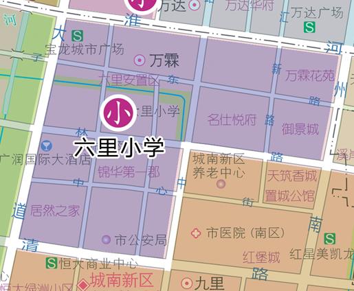 18.阜阳市六里小学:东到颍州南路向西接柳林路向南接中清路,南至三清路,西至颍淮大道,北至淮河路。
