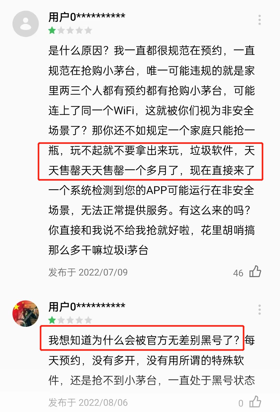 (图源:网络)而在”i茅台“宣布上线后,消费者每天都能上线申购预约。大多数人兴致冲冲地下载,准备抢茅台赚赚外快。从传说中的“买茅自由”到现在的“陪跑游戏”,从一度霸占各大手机应用商店榜首,到app评分2.0分,几乎是因为中签率低触及了用户雷区。长久留住用户、保持热度也是一大难题。