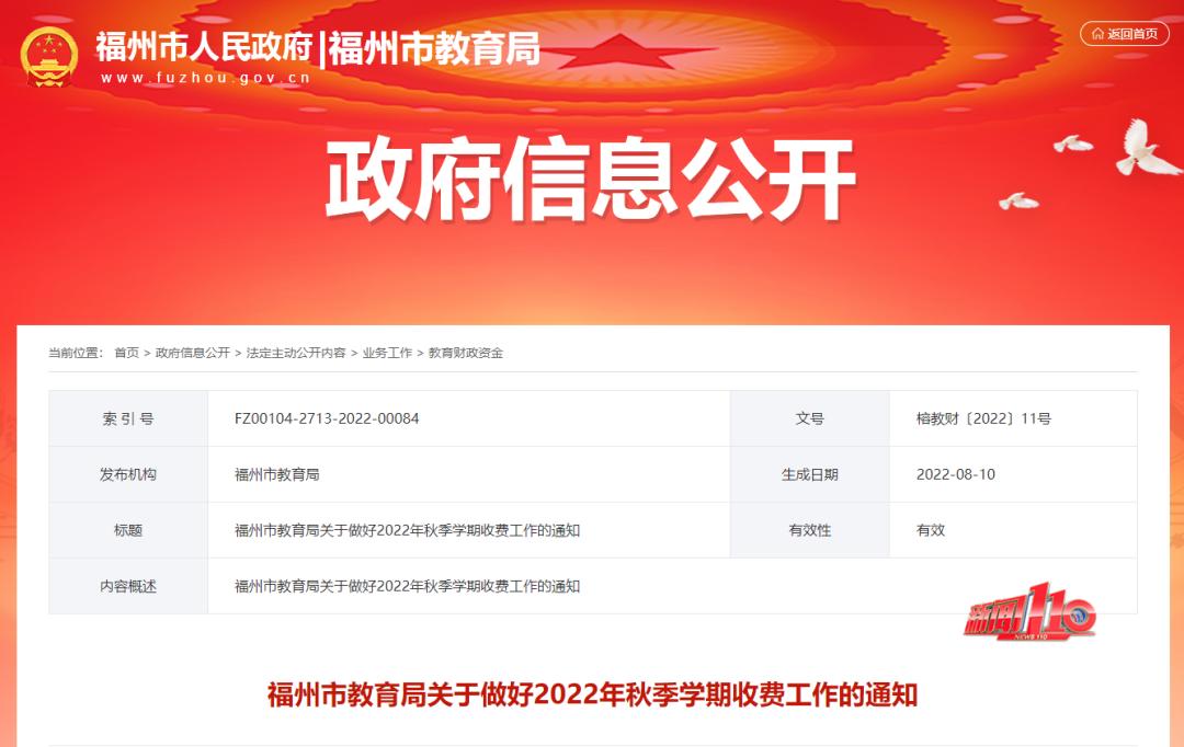 原标题:《定了!福州2022年秋季中小学、幼儿园收费标准!》