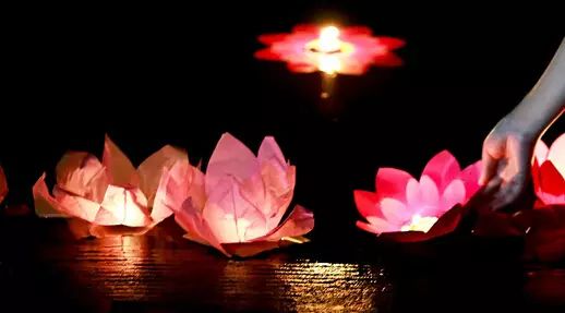 河灯也叫“荷花灯”,河灯一般是在底座上放灯盏或蜡烛,中元夜放在江河湖海之中,任其漂泛。放河灯的目的,是普渡水中的落水鬼和其他孤魂野鬼。放河灯,尤数黄河里放灯壮观。2