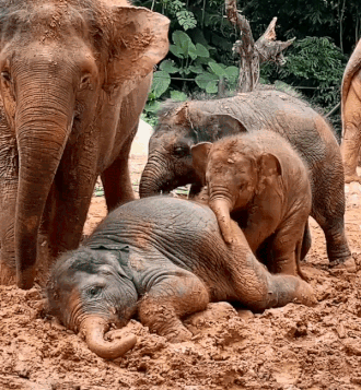 大象也会被晒伤,它们没有防晒霜,大象的皮肤有3厘米左右厚,但是对阳光很敏感。因此,大象喜欢在泥里洗澡。它们在身上沾满泥和土,这些泥土像防晒霜一样,能够保护它们的皮肤。NO.4