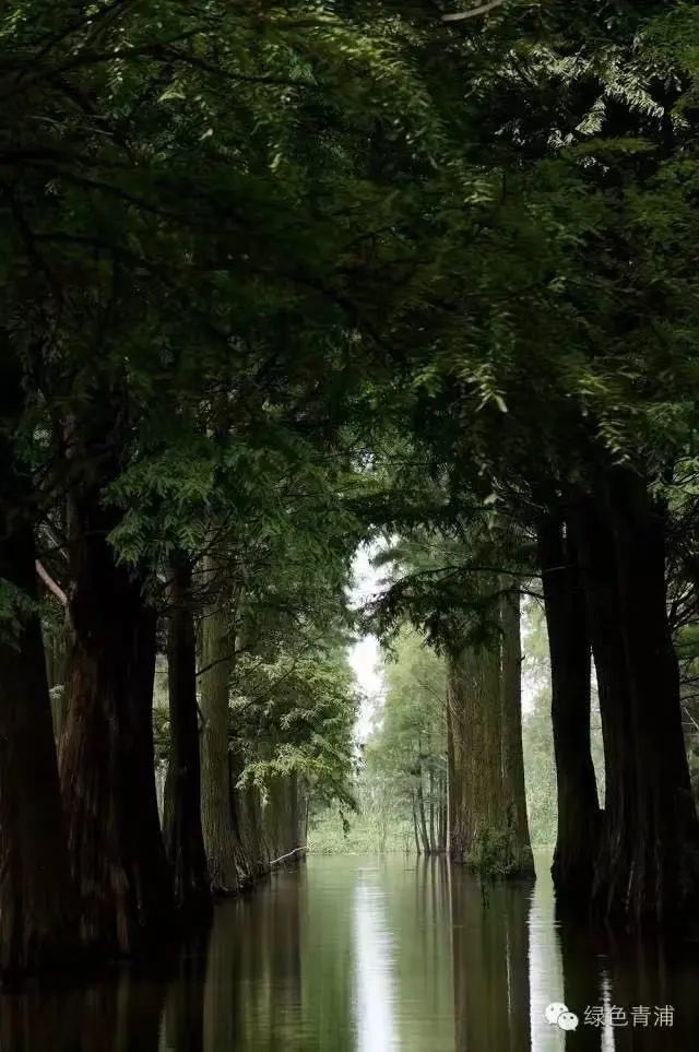 太浦河畔的绿洲练塘古镇边,位于太浦河畔的三泖涵养林,占地近2万亩,是绿海,也是绿洲。