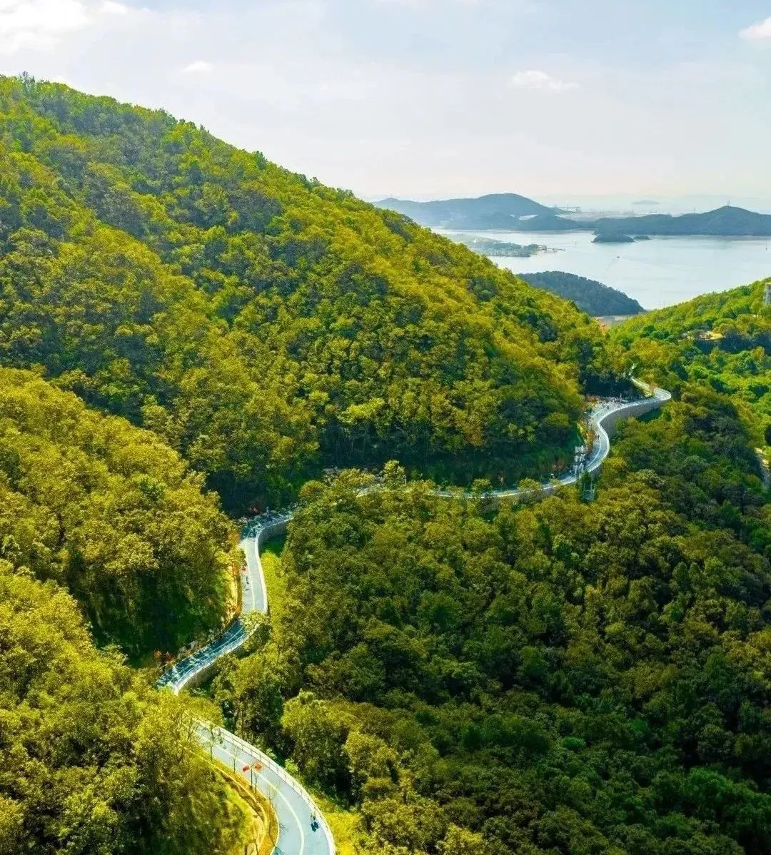 山海兼胜的东海云廊,全长25公里,自东向西串连起城区外围的东山、长岗山、擂鼓山、海山和竹山等五座山,环抱着定海湾,属北亚热带南缘海洋性季风气候,冬暖夏凉,温和湿润,光照充足。常年主导风为夏季东南风,冬季西风。未来将打造成为独具特色的定海山历史文化长廊,全国城市排涝水利工程样板、全国一流的城市休闲运动绿道。