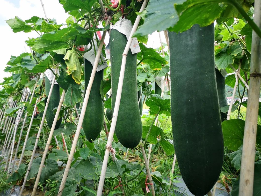“农户到我们基地学习冬瓜种植技术,回去后流转土地发展种植,种子由基地提供,最后统一收购。冬瓜品种都是经过我们基地试验成功后才向农户推广,目前品种有‘1848’‘绿优铁柱’。最大的一个可长到120多斤,一亩栽800株苗,一株只留一个瓜,一个瓜平均40斤,一亩地可产16吨,一亩地投入成本才6000-7000元,如果市场行情好的话,一亩地可收入10余万元。”李富红说。