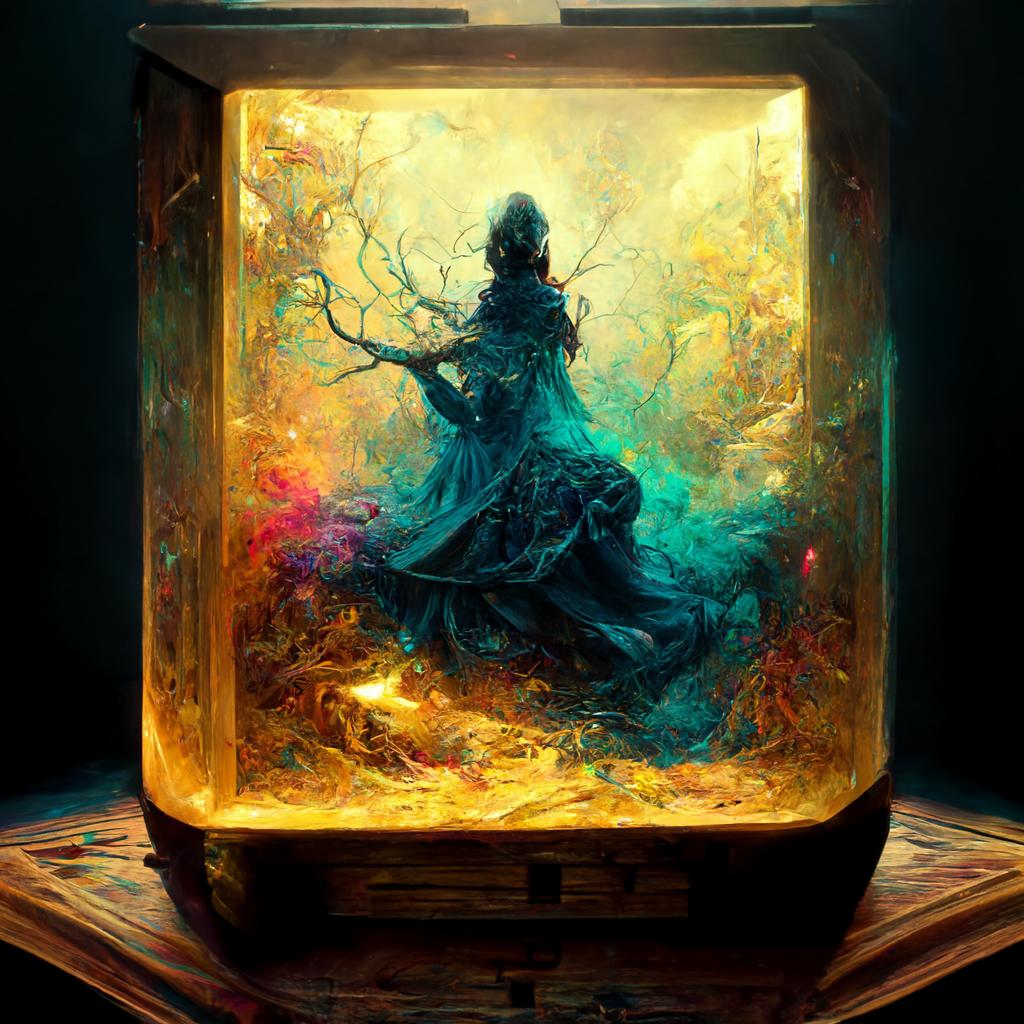 ▲MidJourney生成的“潘多拉魔盒与AI”。水和老虎