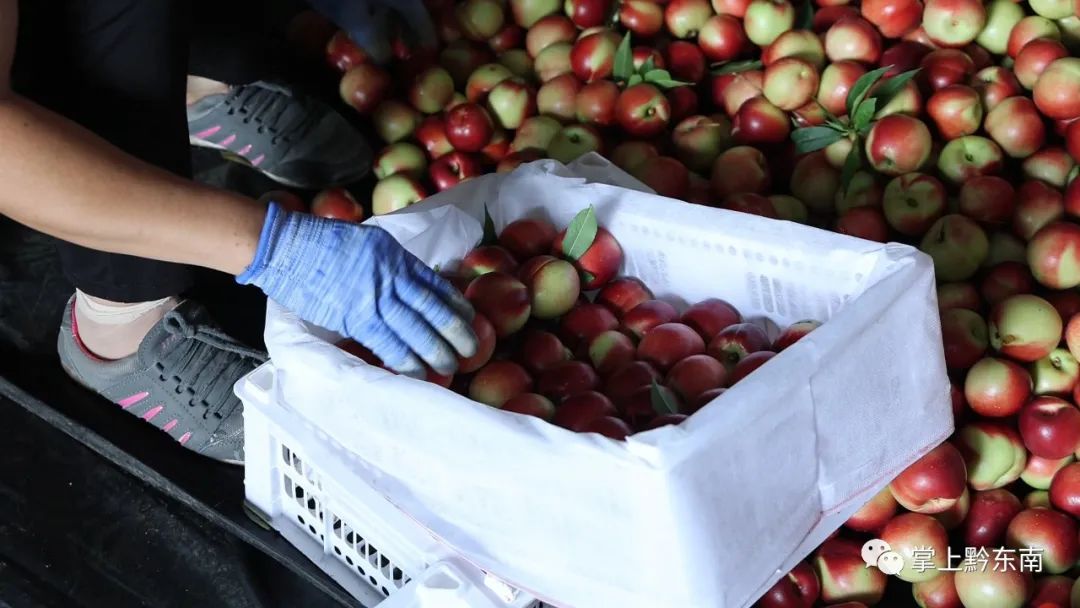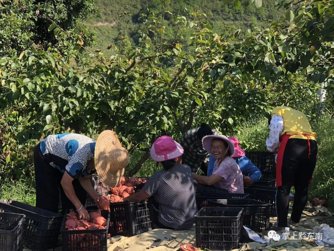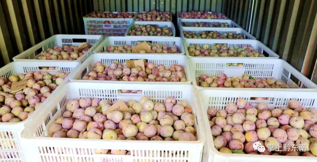 在距施秉县城11公里的甘溪乡望城李子种植基地,五十余名务工群众正忙着将成熟的贵妃李收果、装箱、上车。