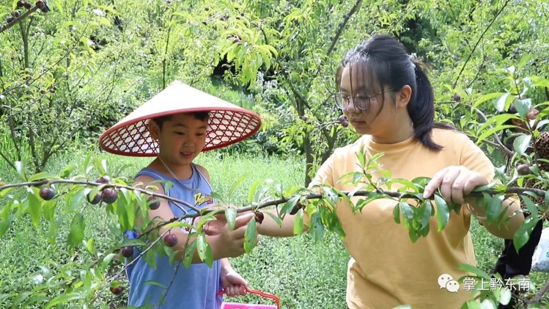 伴随着暑期的到来,丹寨县兴仁镇窑货村的200亩“红脆李”也进入了成熟采摘期。不少游客带上孩子,走进果园,体验采摘乐趣,品味田园生活。