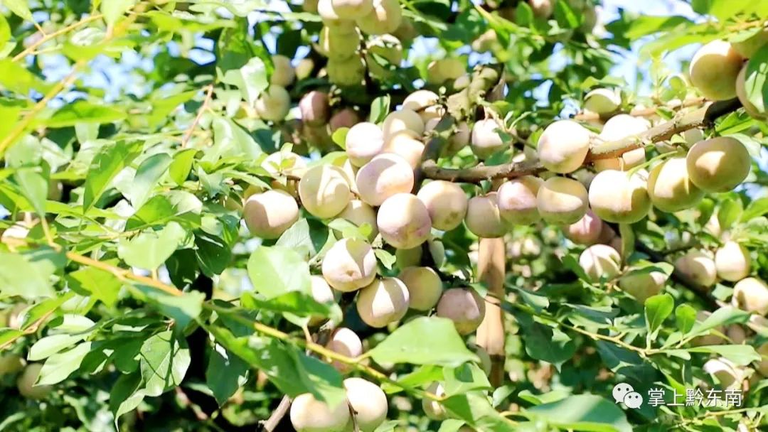 时下,正值瓜果成熟期。在施秉县各精品水果种植基地里,不同种类的水果挂满枝头,火红的珍珠枣油桃、青黄饱满的李子,景色不一,描绘出一幅生机盎然的时令水果图。