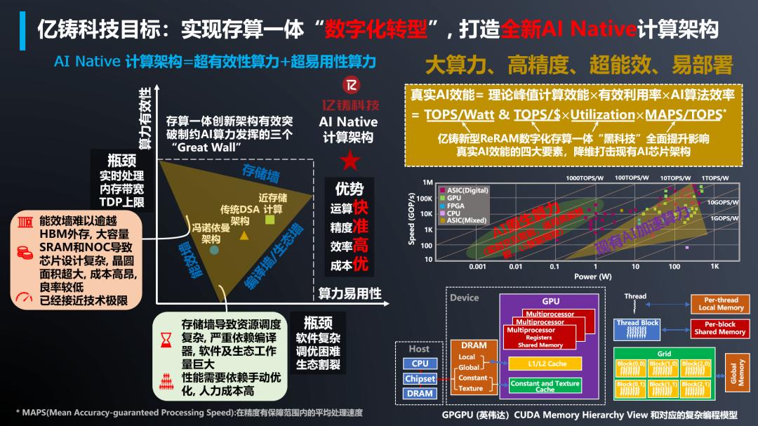 Debu说,亿铸基于ReRAM全数字存算一体大算力AI芯片,具有高能效比、高精度、高时延确定性、易部署等特点。