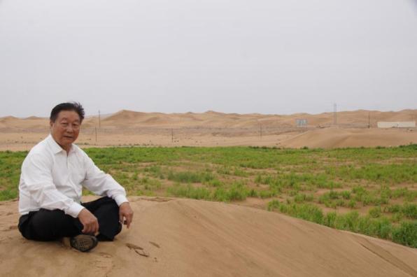 林占熺在内蒙古阿拉善菌草治沙基地