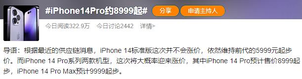iPhone 14 Pro 的价格最近也被爆出来了,8999 元起,属实是有点贵了。。。
