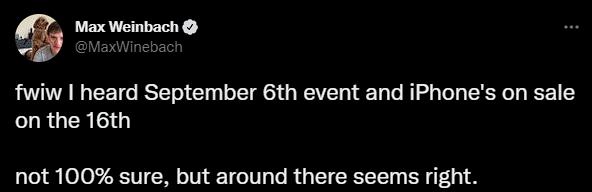 对了,iPhone 14 新品发布会的时间是 9 月 13 号,不过最新消息又说提前一周到了 9 月 6 号。
